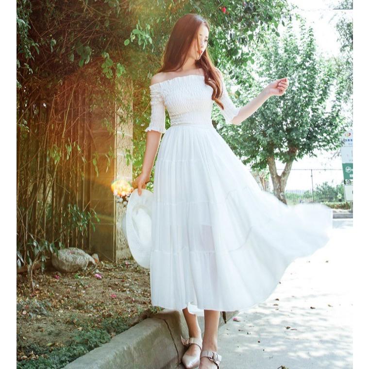 即納 リゾートワンピース ロング ビーチドレス オフショルダー 白 リゾートワンピース 通販 ドレスバケーション マキシ丈からミニまで ハワイ旅行に