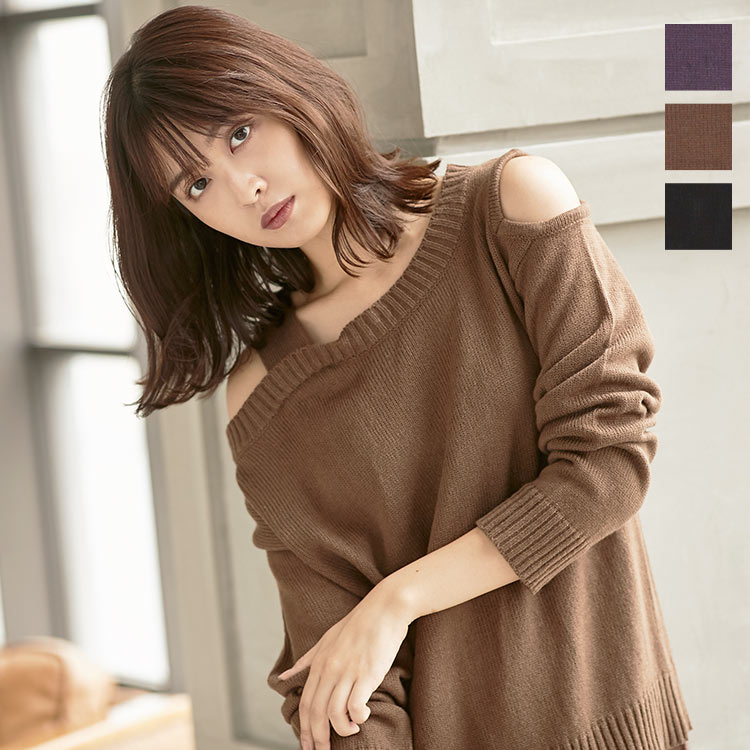 楽天市場 オープンショルダー重ね着風ニットプルオーバー C4076 入荷済 レディース トップス 秋 秋冬 長袖 トレンド おしゃれ ニット セーター ゆったり きれいめ 無地 オープンショルダー 肩だし 肩あき オフショルダー 黒 ブラック ブラウン 神戸レタス Kobe